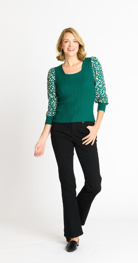 Refresh your wardrobe with our Rib Sweater with Printed Sleeve in Forest Biome. This unique piece combines a classic ribbed design with bold, printed sleeves, adding a modern twist to a timeless silhouette. Perfect for layering or wearing solo, it’s a versatile must-have for any season.